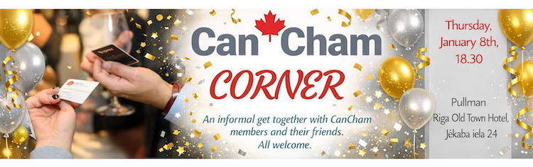 Dear CanCham Members and Friends, Happy New Year! We wish everyone health, wealth, and prosperity in 2026. 2025 was a busy year for CanCham and has set the stage for an even more active 2026. We are launching CanCham’s Strategic Partnership Initiative (SPI), aimed at connecting Canadian companies in Canada with our members. We will also continue supporting the Canadian Armed Forces by hosting procurement seminars for local services and construction projects. This New Year’s CanCham Corner is an opportunity to meet in person, exchange best wishes for the year ahead, and kick off 2026 together at a special event in the Harper Woolf Lounge at the Pullman Riga Old Town Hotel. Canadian Armed Forces personnel and their friends are most welcome. We also want to give our members and friends an opportunity to meet and speak with our Board members about your aspirations for the coming year—and how CanCham may be able to help you achieve them. An informal meeting can be scheduled during event registration.