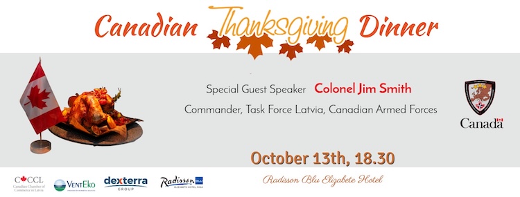 Pictures from CanCham’s Canadian Thanksgiving Dinner 2025 are still on the way. Over fifty members and friends attended CanCham’s Canadian Thanksgiving Dinner on October 13th, 2025 at the Radisson Blu Elizabete Hotel, Elizabetes iela 73, Restaurant C.U.T. where we were delighted to be served a traditional turkey (legs and all) complete with stuffing, cranberry sauce, veggies, etc. Compliments to the chef (again) for preparing everything in such a traditional and tasty manner giving the evening an exquisite touch. Particularly noteworthy was the fact that we again had the opportunity to continue this tradition for the sixth year at this venue. CanCham’s Chairman, Ed Kalvins, welcomed our guests reminiscing that Thanksgiving is the last “long weekend” of the year when Canadians in Canada head to the cottage to close the season, or organize turkey dinners for family and friends, and reminded everyone that they were allowed to make friends with people they didn’t know yet within the CanCham community. We then recognized Gold level members VentEko represented by Edgars Dimitrijevs and Bravo Zulu represented by Matt Bentley who are key contributors to the CanCham. Board and Audit representatives were introduced (Indra Sproìe-Kalviòa, Mark Watson and Normunds Kupcis, Una Brûna and Dzintra Reinigere) along with the Embassy’s representative to the Board, Nicolas Lepage, the Canadian Senior Trade Commissioner who has been instrumental in supporting the CanCham. Nicolas Lepage then welcomed those present on behalf of the Embassy of Canada emphasizing the Embassy’s support for the CanCham as it contributes to developing partnerships for both military projects and commercial development between Canada and Latvia. Our special guest, Colonel Jim Smith, Commander, Task Force Latvia, Canadian Armed Forces, addressed those present by providing his thoughts on what the Canadian Thanksgiving means to him and provided insight into recent developments regarding TFL and the Canadian deployment in Latvia. We need to remember that the Canadian Armed Forces are part of Task Force Latvia helping preserve security in this region. One of the CanCham’s main objectives is to “strengthen the bonds between Canada and Latvia”. We do this, in part, through such social events providing Canadians and Latvians the opportunity to meet in person in order to promote and strengthen each society’s positive perceptions of the other. Such an event gives local Latvians a rare opportunity to mingle with “real Canadians”. We also mentioned the upcoming Procurement Seminar & Luncheon on October 27, 2025 for those interested in “Making the Connection to supply goods and services to the Canadian Armed Forces in Latvia”. We then proceeded to the meal enjoying the elegance of the Restaurant C.U.T. surroundings which created cosiness, intimacy and positive emotions. A good night was had by all. Please follow https://cancham.lv/ for updates.