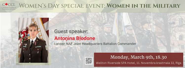 Our special guest speaker will be Antoņina Bļodone, Commander of the Latvian National Armed Forces Joint Headquarters Battalion.