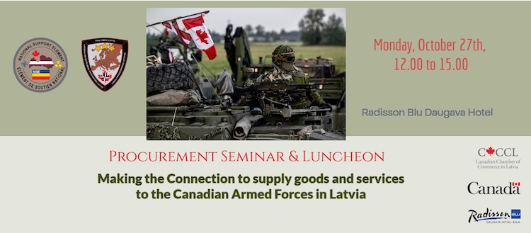 Dear CanCham Members and Friends, You are invited to participate in the second in a series of seminars titled “Making the Connection to supply goods and services to the Canadian Armed Forces in Latvia”. We intend to: